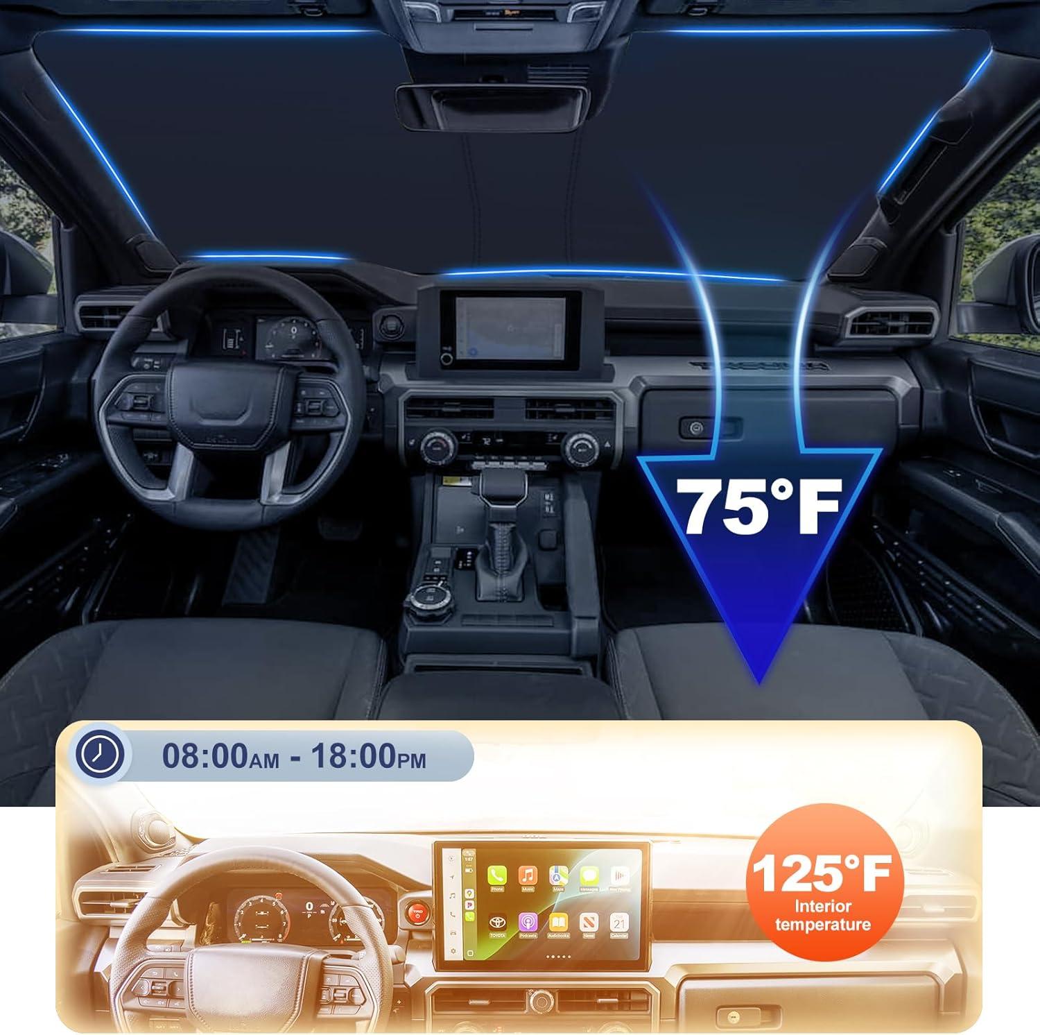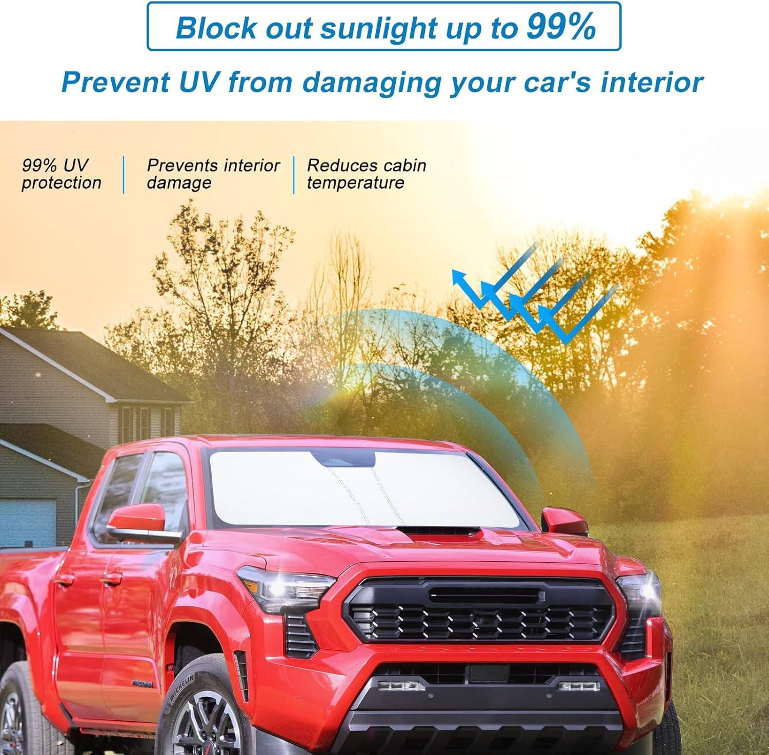 【Excellent Sun Heat Protection】Designed for the hot summer season, It has efficient sun protection performance. It completely covers the entire windshield, effectively blocking direct sunlight and keeping your truck cool, allowing you to enjoy a pleasant driving experience even in the hot summer.
