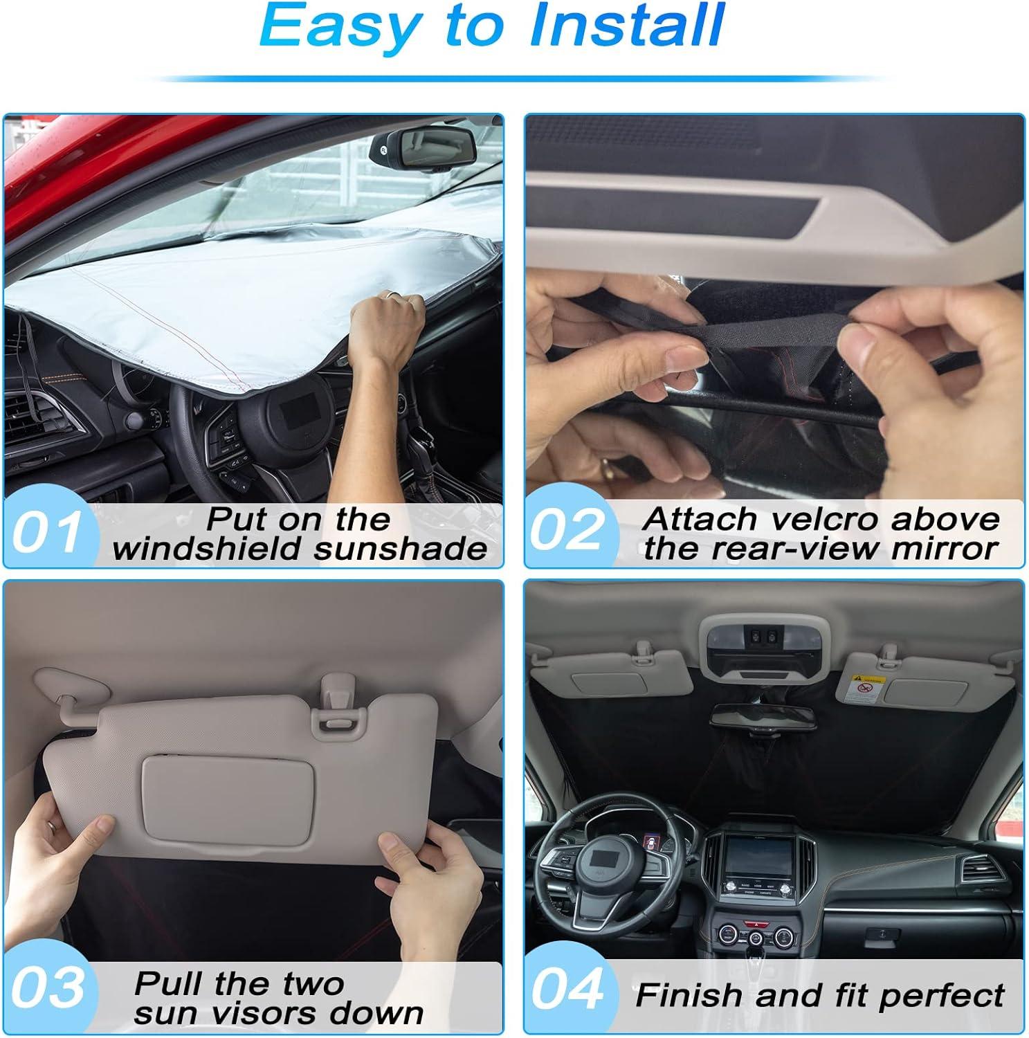 【Easy to Install and Store】Simple installation, make the sunshade fits the edge of the windshield, stick the Velcro, and put down the two sun visors to increase the support and done. When not in use, you can simply store it in the pouch.