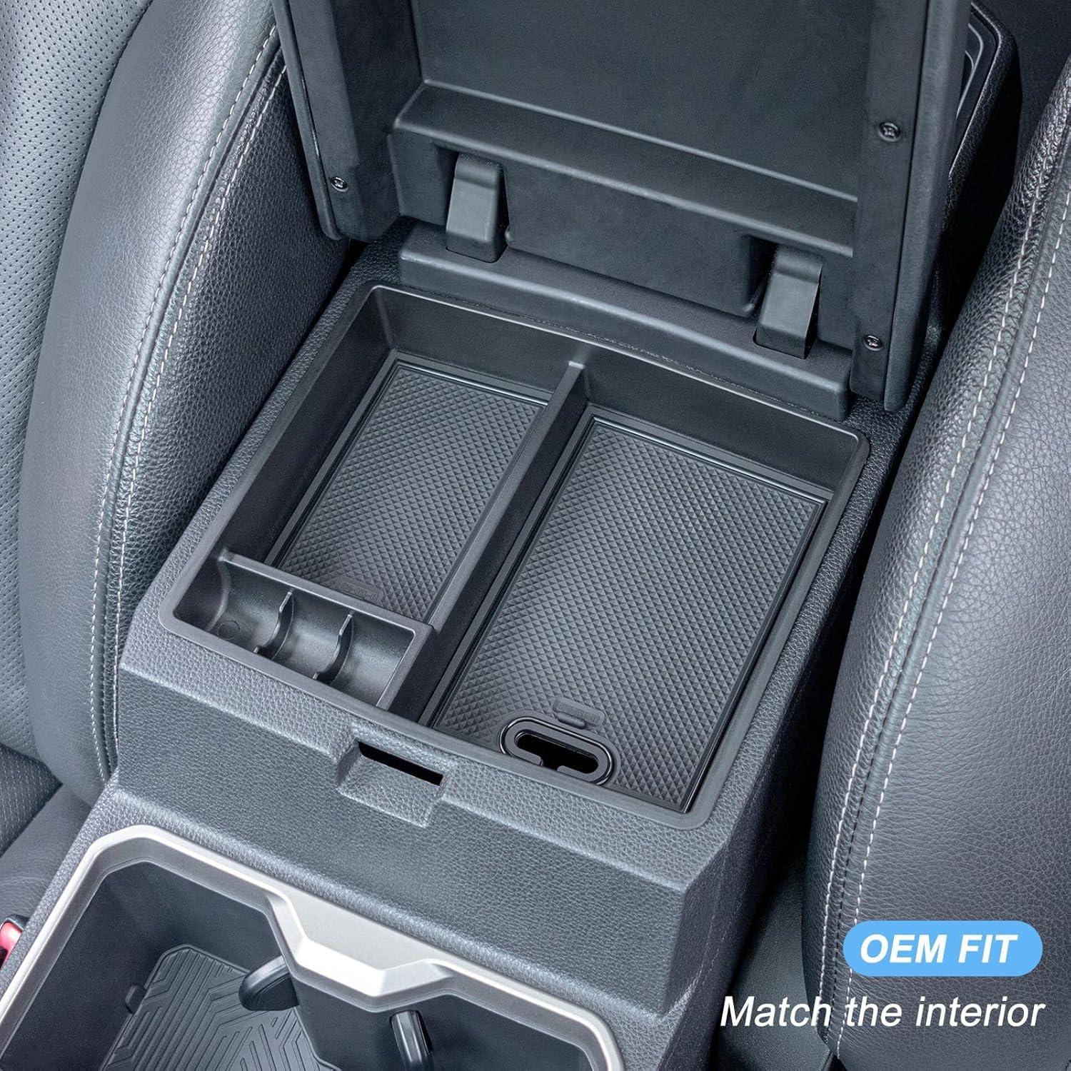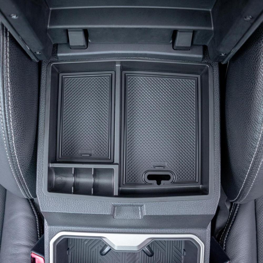 【Easy To Use】Pressing the button can open and close the center console hidden box. The tray include 2 washable rubber mats that keep items from rattling