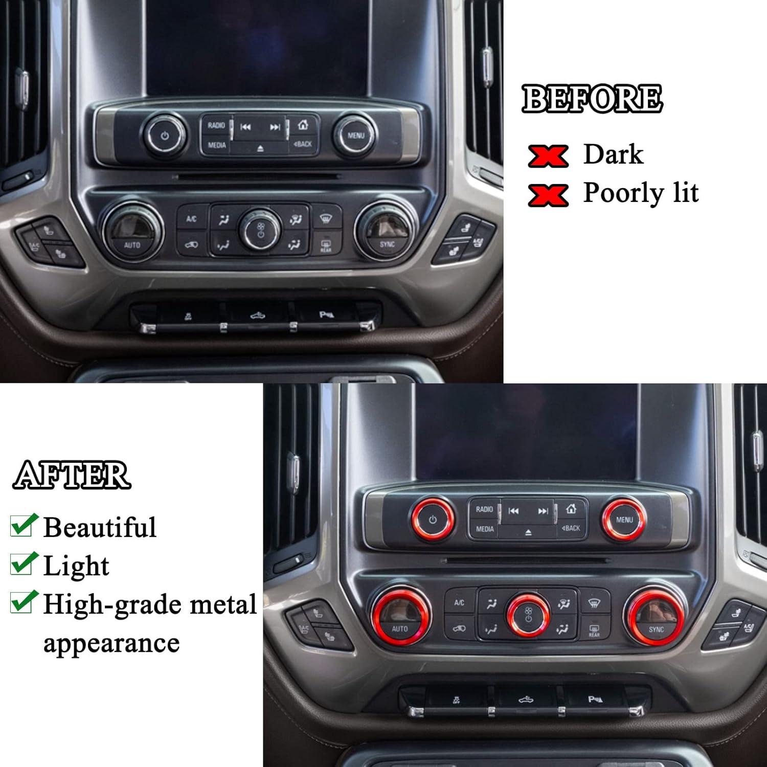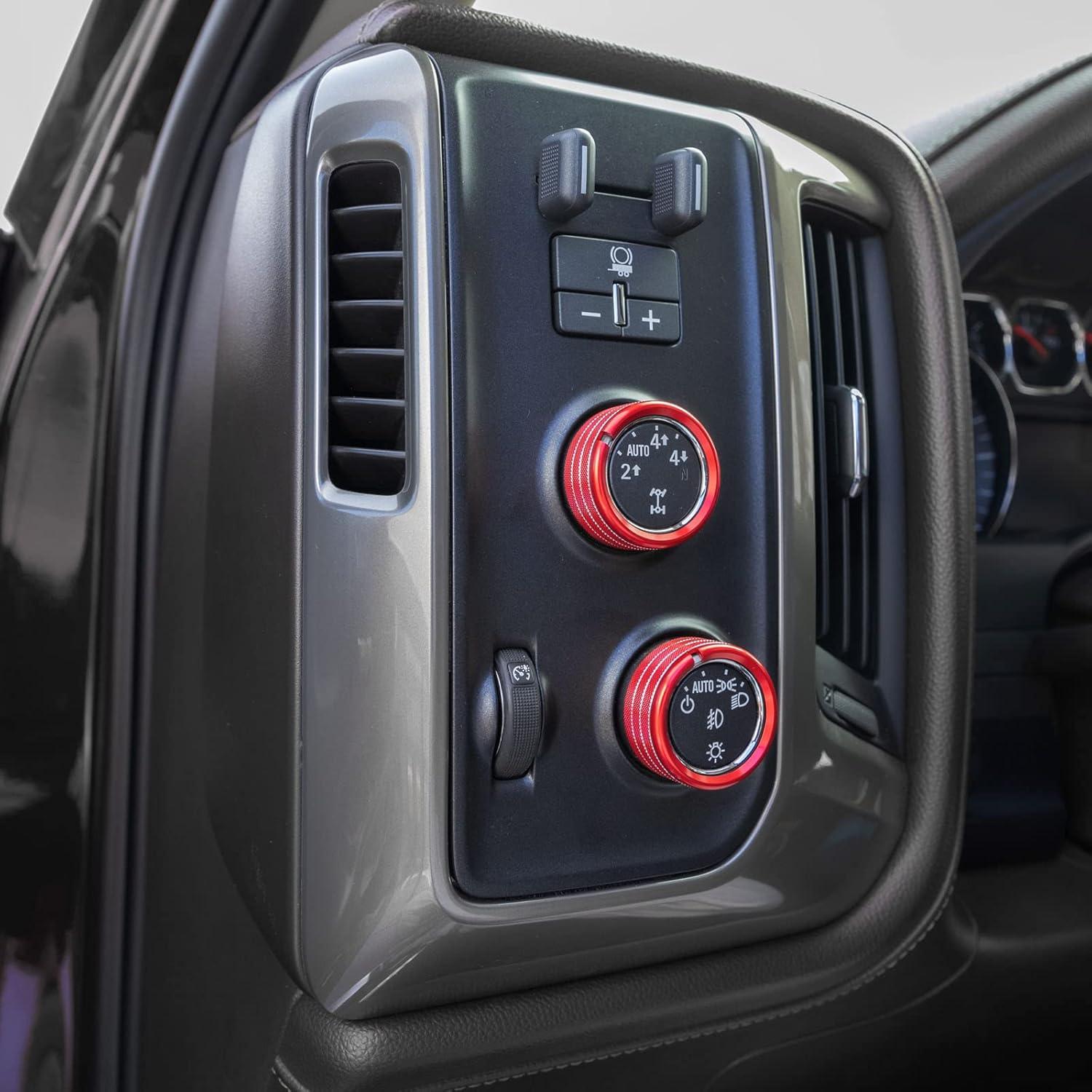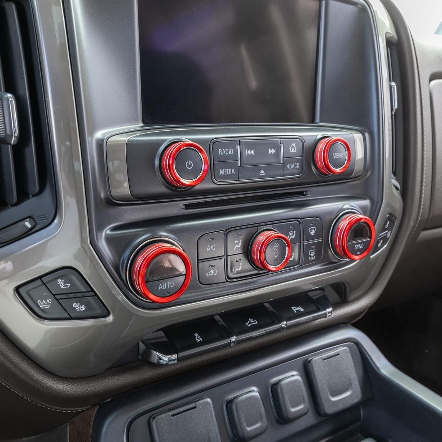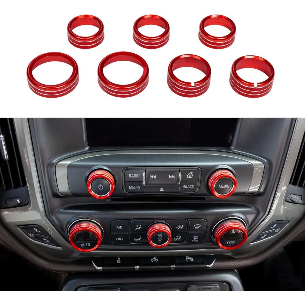 JKCOVER Center Console Button Knobs Cover Compatible with 2014 2015 2016 2017 2018 Chevy Silverado/GMC Sierra Air Conditioner Control Switch Knob Cover (Red, 7 Pcs)(Red)