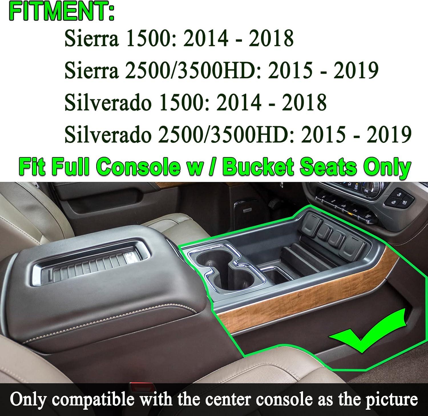 [FITTMENT]–The center console compartment organizer fits for 2014-2018 Chevy Silverado/GMC Sierra 1500; 2015-2019 Chevy Silverado/GMC Sierra 2500HD; 2015-2019 Chevy Silverado/GMC Sierra 3500HD. Only fits full console with bucket seats.