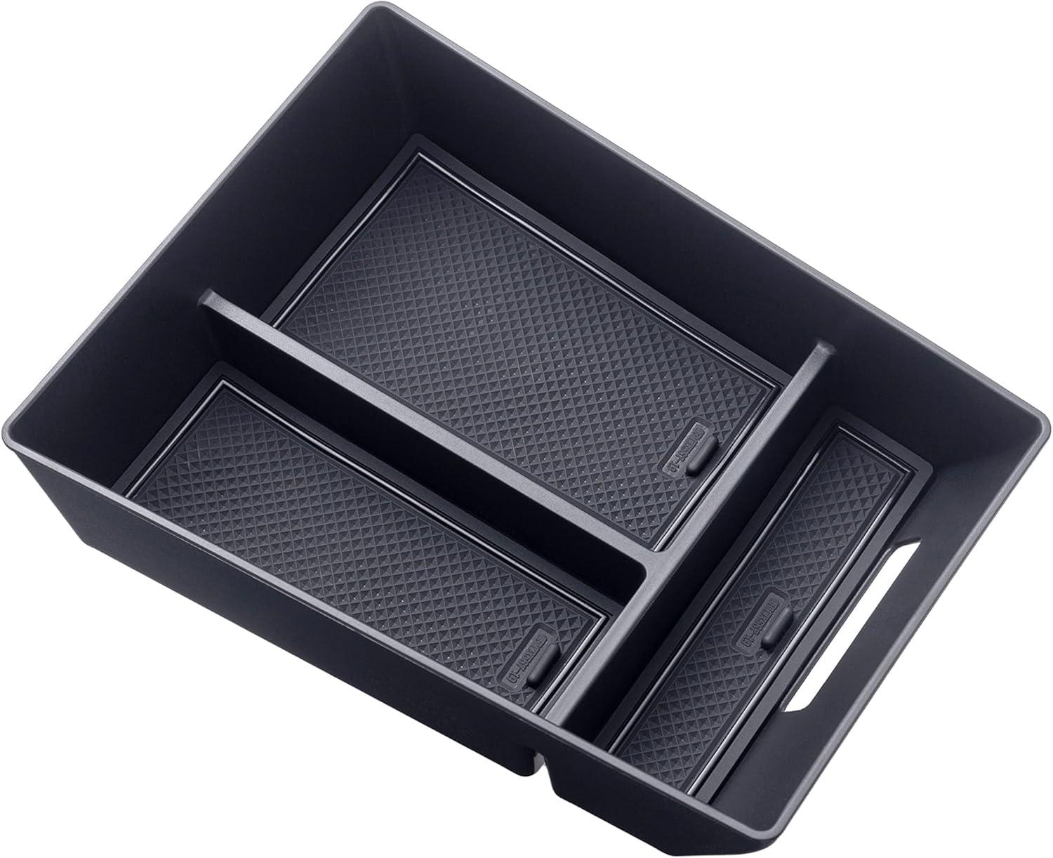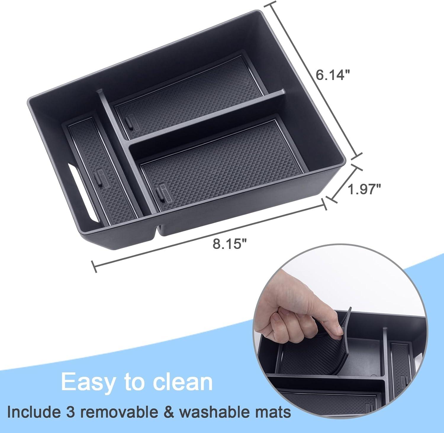 【Add more space】The flocking center console tray divides the armrest box into upper and lower layers, increasing the storage space. Keep all your small items easy to access and keep them organized
