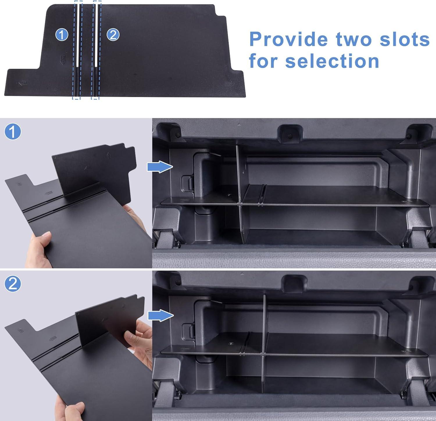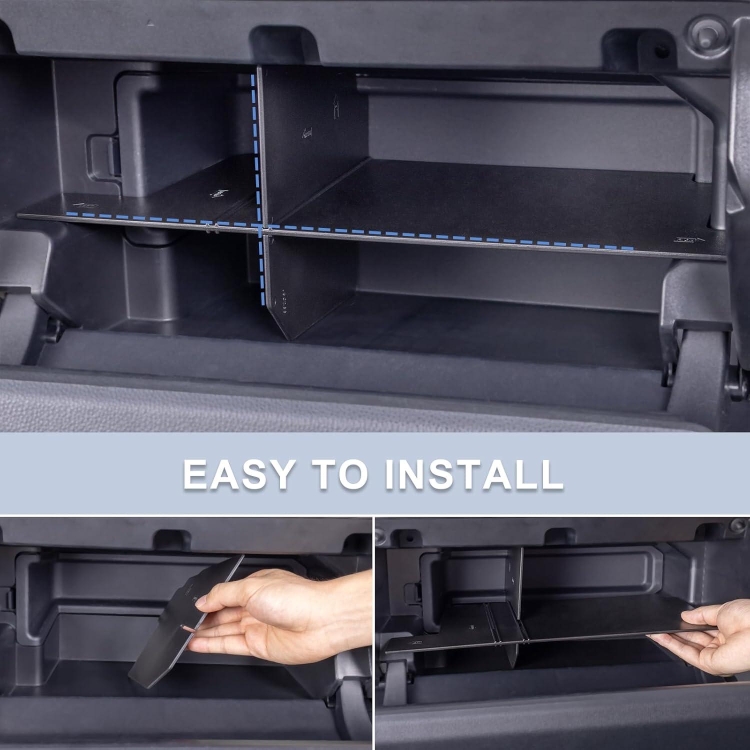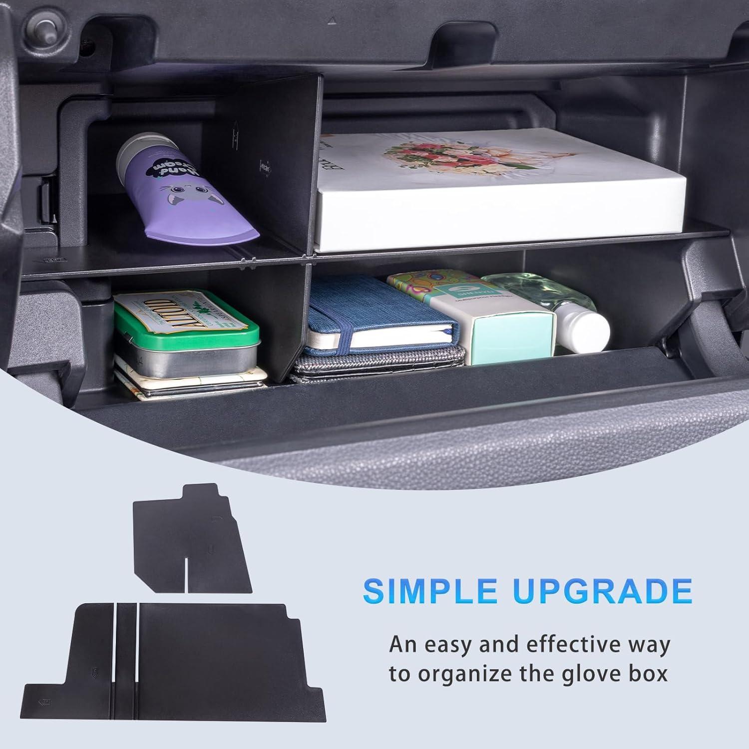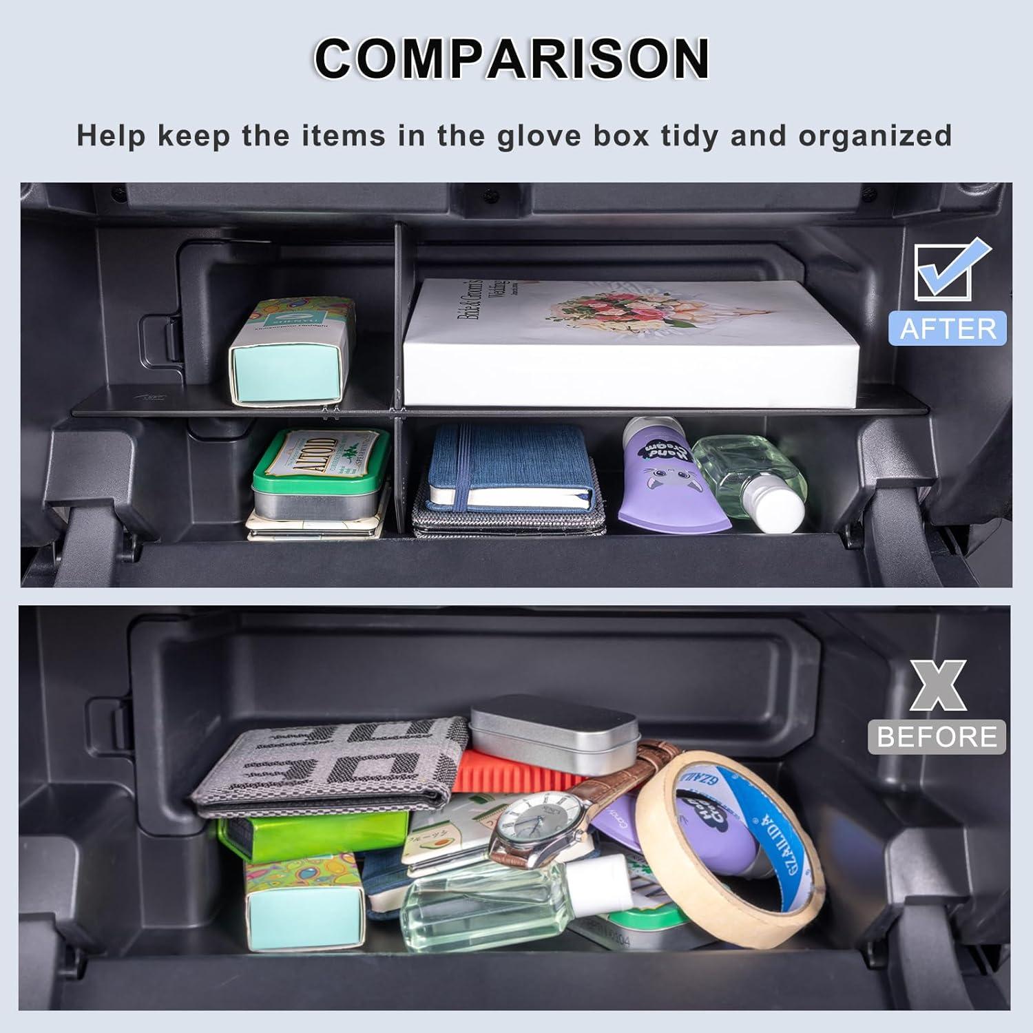 【Keep organized】Divide the glove box into 4 usable compartments to maximize storage space, keep your items organized and easy to access